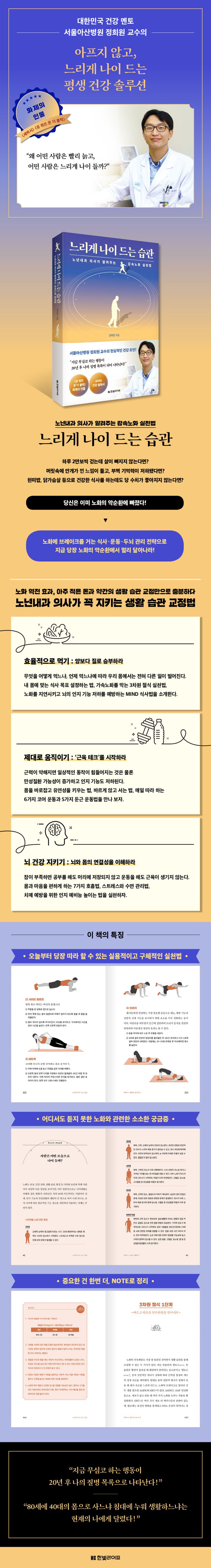 저자는 그동안 집필한 책에서 노화의 여러 측면과 건강의 큰 틀에 대해 이야기했지만 구체적인 생활 습관은 다루지 않았다. 좋은 정보가 이미 충분히 많다고 생각했기 때문이다. 하지만 진료실 안팎에서 잘못된 건강 관리로 건강을 해치는 사람, 동년배보다 심한 노쇠를 경험하는 사람, 가속노화로 여러 만성질환을 앓는 많은 사람들을 만나며 안타까운 마음에 이 책을 썼다.