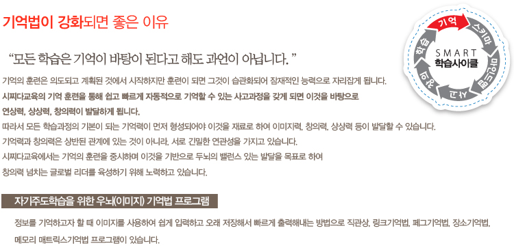 우뇌의 이미지력을 활용해 시.공간적으로 기억하도록 훈련시키는 프로그램입니다.