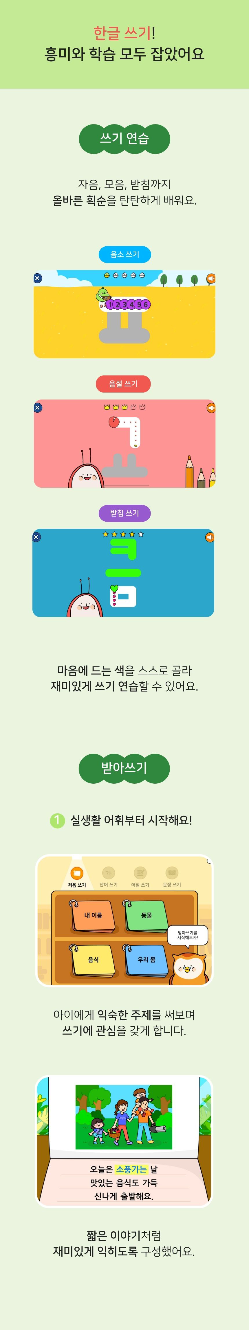 ‘한글 시작 패키지’는 한글과의 첫 만남을 즐겁고 친숙하게 만들어 줍니다.