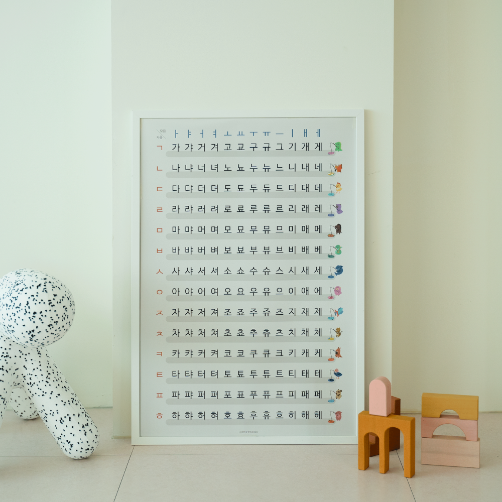 받침 구조와 소리 변화를 직접 손으로 조작하며 익히는 자석형 학습 포스터.