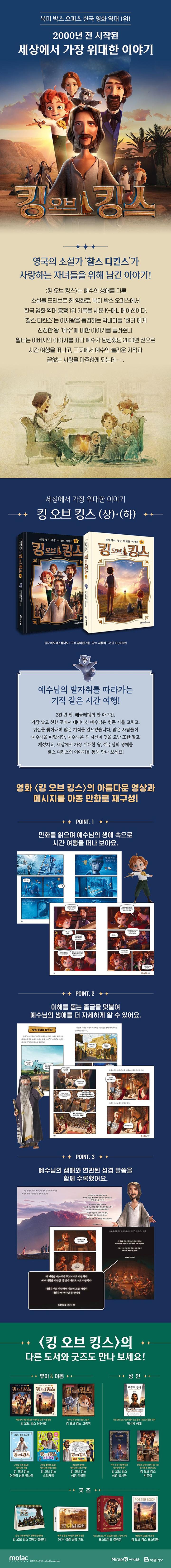 〈킹 오브 킹스〉는 예수의 생애를 다룬 ‘찰스 디킨스’의 소설을 모티브로 한 영화로, 2025년 북미 박스 오피스에서 개봉한 한국 영화 중 흥행 1위를 기록한 K-애니메이션입니다. 뛰어난 영상미와 독특한 내레이션 구조를 빌려 2천 년 전, 예수의 삶 속에서 행한 기적과 베풂 그리고 시련과 부활을 그려 내어 많은 사람들에게 진정한 사랑의 의미를 전달합니다.