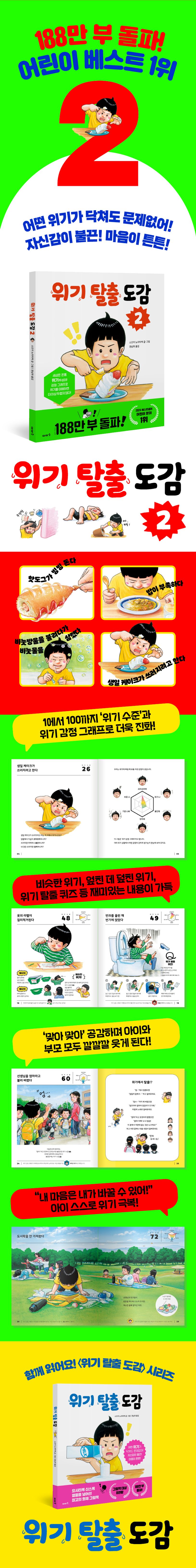 《위기 탈출 도감》을 읽고 나서 어떤 위기가 와도 ‘지금 위기는 몇 번째 위기인가?’라고 담담하게 받아들일 수 있게 되었다라는 독자들의 메시지를 많이 받았다. 인생에서 몇 번이고 찾아오는 위기. 당황하지 않고 평온하게 극복하기 위해 《위기 탈출 도감》과 《위기 탈출 도감 2》를 늘 곁에 두고 보자!