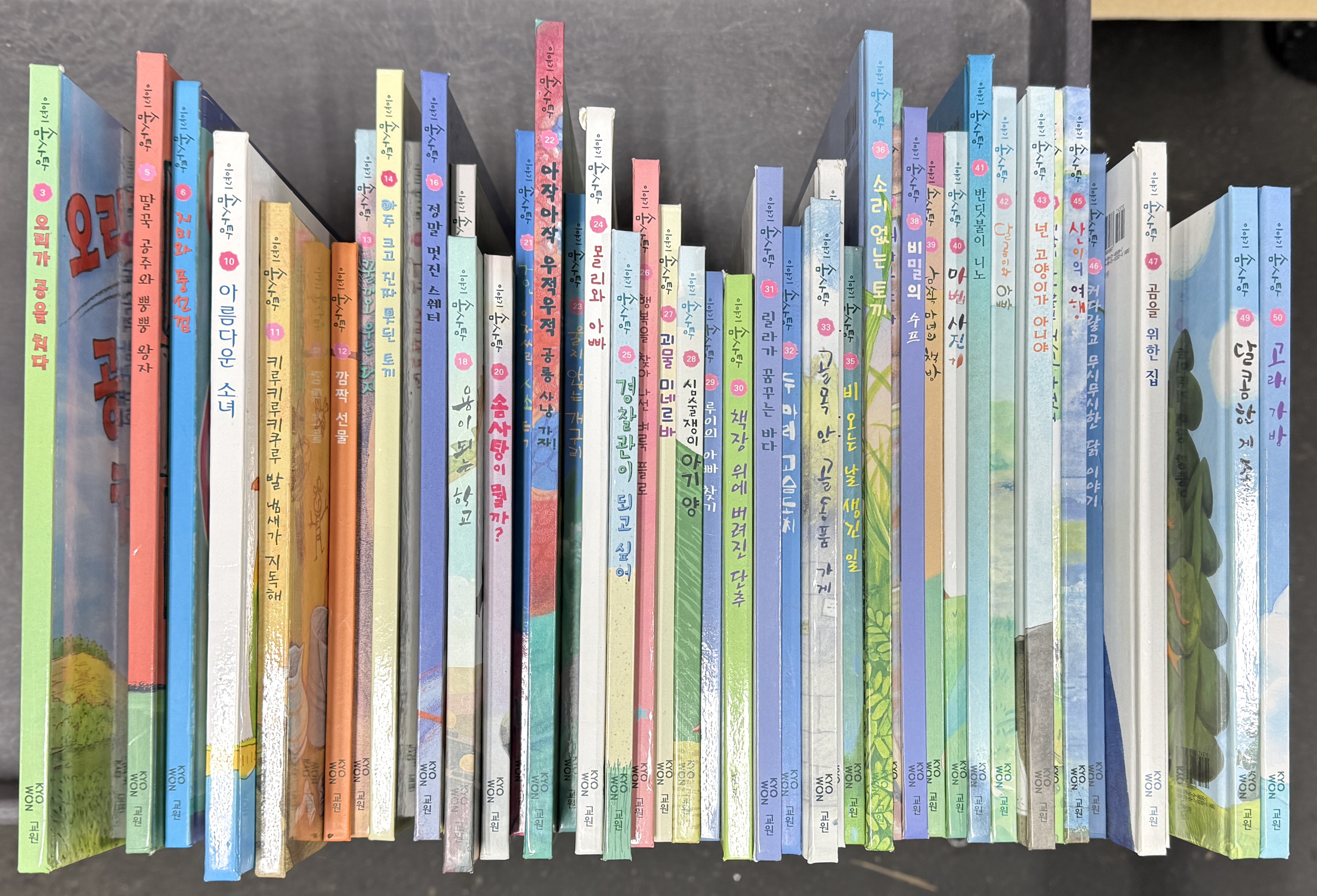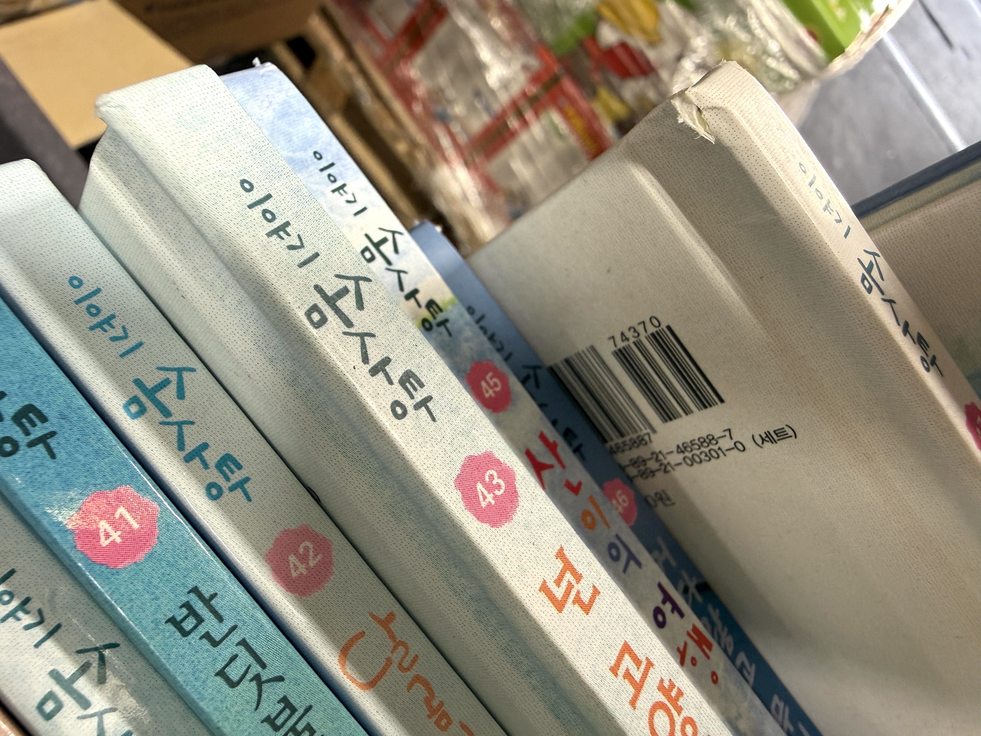 - 상태: 책기둥&모서리 눌림&까임, 1권 제본흔들림, 세월감, 사용감, 2권 겉표지와 연결부분 찢어짐, 겉표지 스티커, 1권 겉표지 낙서, 5권 겉표지 접히는 부분 찢어짐 (아래 실사참조)