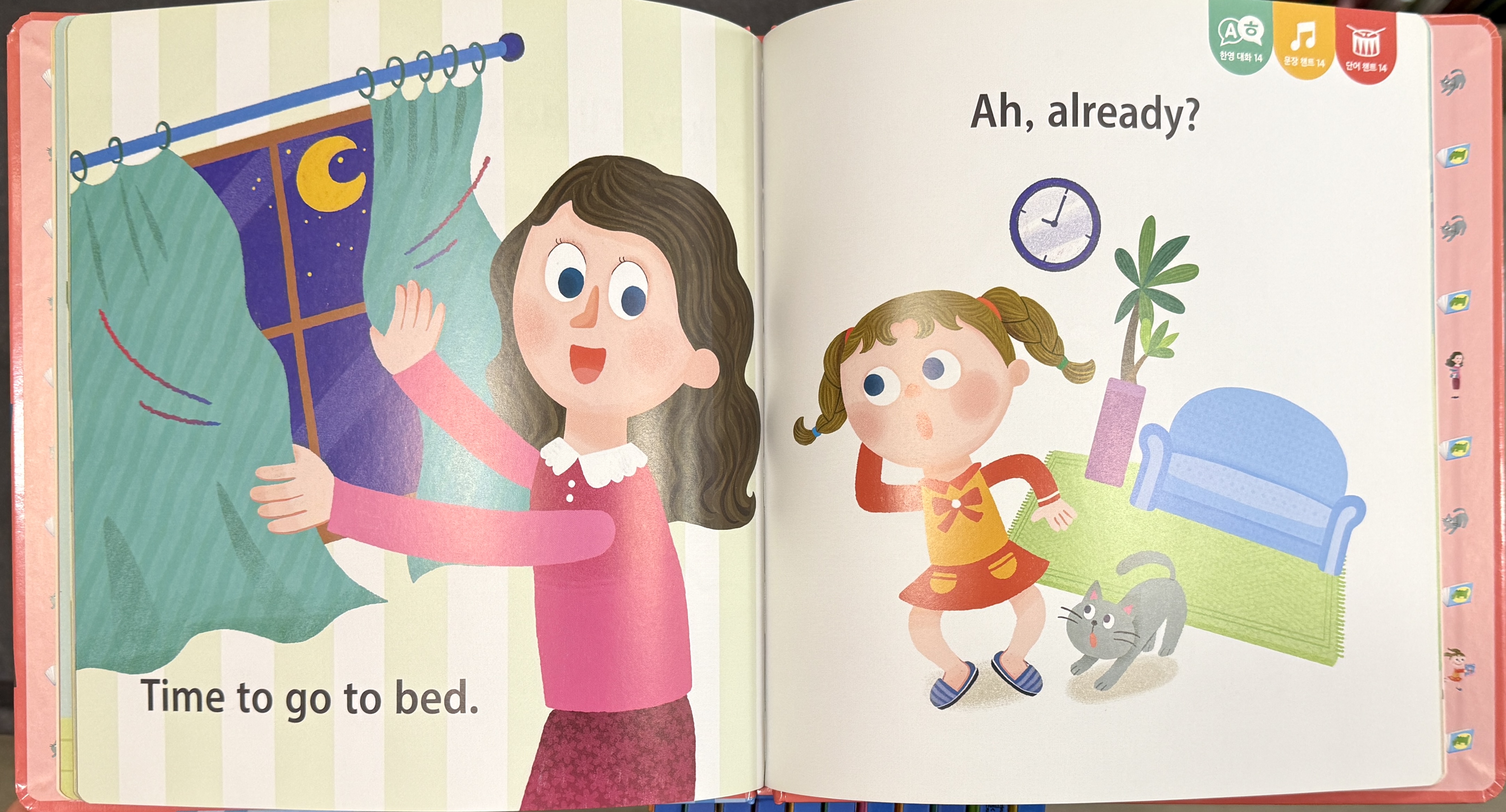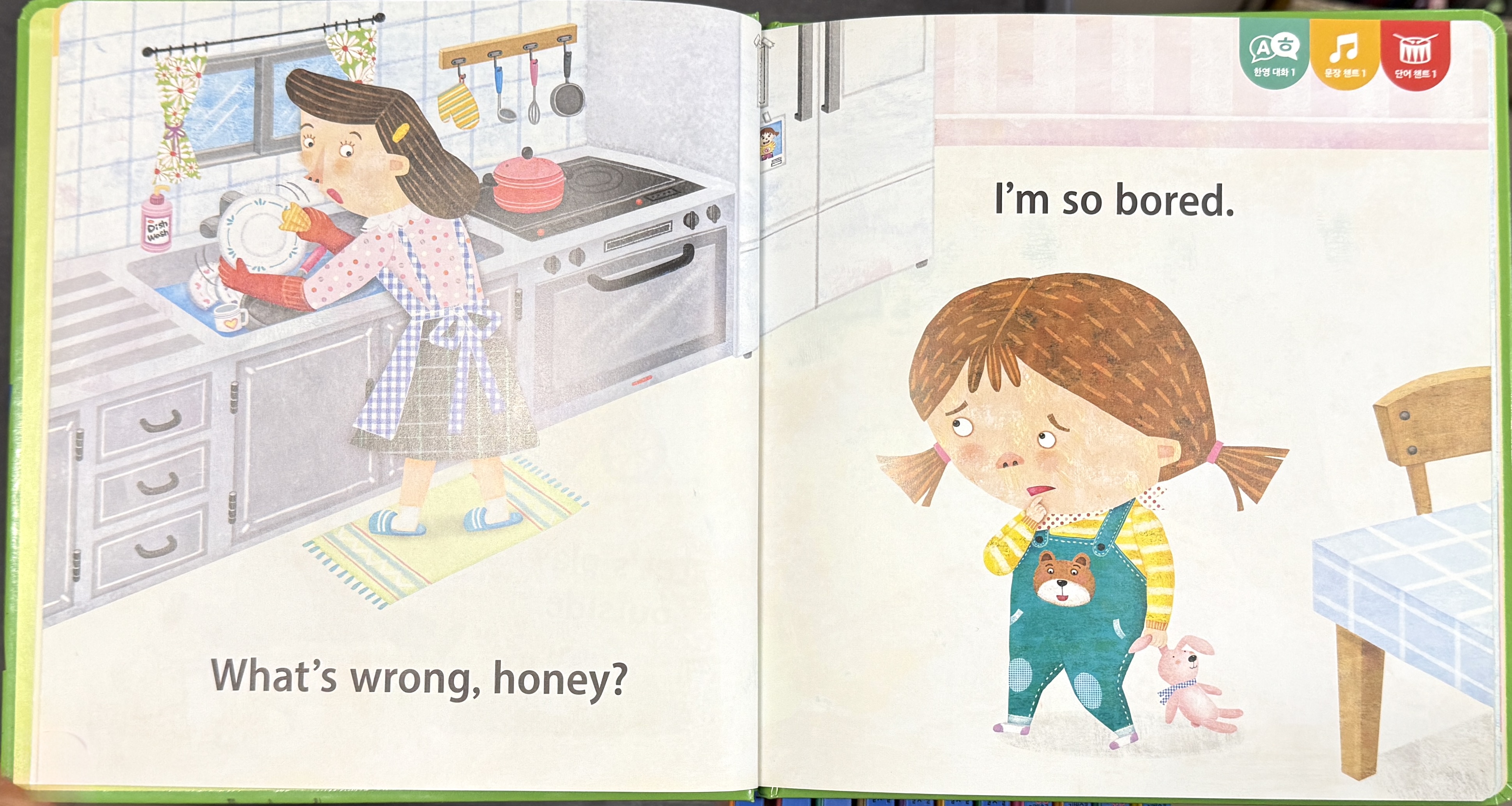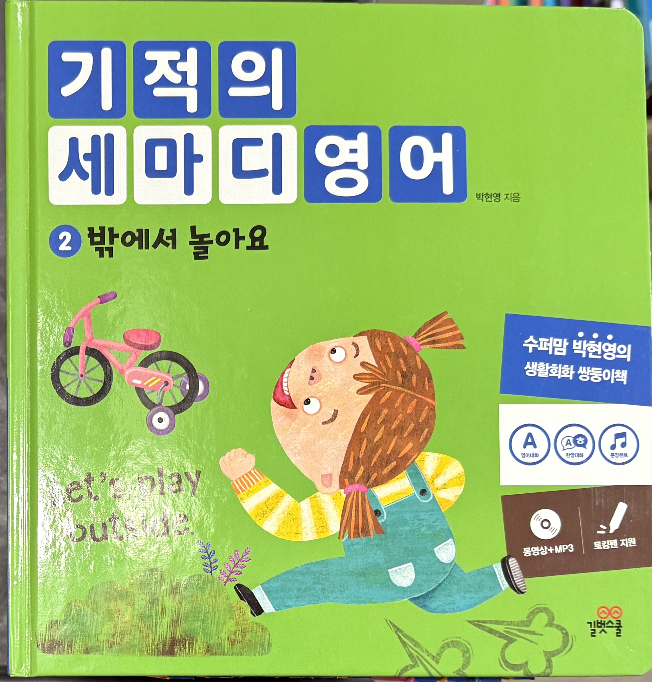 | 귀가 뻥! 말문이 빵! 수퍼맘 박현영의 술술 터지는 생활회화 그림책 어린이 외국어교육 전문가 박현영 선생님의 저서로, 3~7세 아이들을 위한 유아용 생활회화 그림책입니다. 일어나서 잠들기까지 네이티브 스피커가 일상에서 가장 많이 쓰는 세 마디 대화체 영어를 엄선하여 신나는 챈트 리듬에 실었습니다. 챈트 리듬에 맞춰 신나게 외치기만 하면, 누구라도 귀가 뻥~ 입이 빵~ 트이는 효과를 보게 됩니다.외국어학습을 위한 영어독서에서는 눈으로 읽는 게 아닌 반드시 큰 소리로 읽기, 즉 외치기를 해야 학습효과를 높일 수 있습니다. 즐겁게 듣고 따라 외치는 소리학습이 되도록 챈트 음원이 특별 제작되어 한 번 들으면 흥얼흥얼 쉽게 따라 부를 수 있게 됩니다.보통의 영어책처럼 단순히 음성을 한번 들려주고 끝나는 게 아닌, 이 책은 장면마다 특별 제작된 4가지 음원을 심어서, 제시 문장을 여러 버전으로 다양하게 반복할 수 있게 해줍니다. 토킹펜으로 콕콕 4번만 찍어 보면 금새 세 마디 통문장이 저절로 머릿속에 기억됩니다.권당 40개씩 세 마디 생활영어를 알차고 쉽게 익힐 수 있도록 다음과 같은 특징들을 담았습니다. 동물 캐릭터부터 친근한 아이 캐릭터까지 책마다 개성 넘치는 캐릭터로 아이들의 몰입도를 올려주고, / 애니메이션 동영상 CD로 흥미를 높여주고! / 토킹펜이 지원되어 언제 어디서든 아이가 스스로 들을 수 있으며! / 책 전체를 읽어주는 전체 파일 3가지, 본문 장면마다 문장을 반복해주는 페이지별 음원 4가지 총 학습 음원이 7가지나! / 쌍둥이책으로 제작되어 영어, 중국어, 일본어 등 다개국어 학습이 수월해집니다! / 업그레이드된 음원 파일들 중 ‘단어챈트’는 통문장 속 개별 단어의 정확한 뜻까지 세심하게 알려주는 챈트로서, 엄마도 몰랐던 생소한 단어를 아이와 함께 배우게 됩니다. 기적의 세마디 영어로 많이 듣고 많이 말해 보는 기회를 줘서 아이의 입과 귀에 영어 감각을 입혀주세요. 기관에 보내는 번거로움 없이 집에서 충분히 영어 능력자로 만들 수 있습니다! 엄마랑 말놀이 하듯 즐겁게 외치기만 하면 끝! <기적의 세마디 영어>로 평생 가는 언어의 힘을 길러주세요! 기적의 세마디 영어 1: 어서 일어나 (Wake up, sweetie.) |