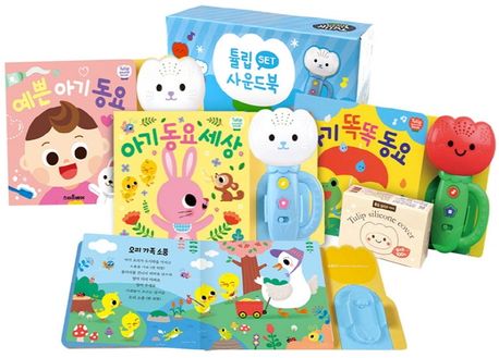 영유아 베스트 동요 사운드북 ’튤립 사운드북’ 시리즈는 소리에 민감하게 반응하는 영아들을 위한 감각 자극 사운드북으로, 갖고 싶은 동요 사운드북 1위에 오른 엄마들의 필수 육아 아이템입니다. 200만 육아맘들의 사랑을 받고 있는 튤립 사운드북 시리즈 중 하늘이 세트는 소중한 우리 아기에게 들려주고 싶은 〈아기 동요 세상〉, 인지 발달을 돕는 〈아기 똑똑 동요〉, 올바른 생활 습관을 알려 주는 〈예쁜 아기 동요〉를 한 세트로 구성했습니다.