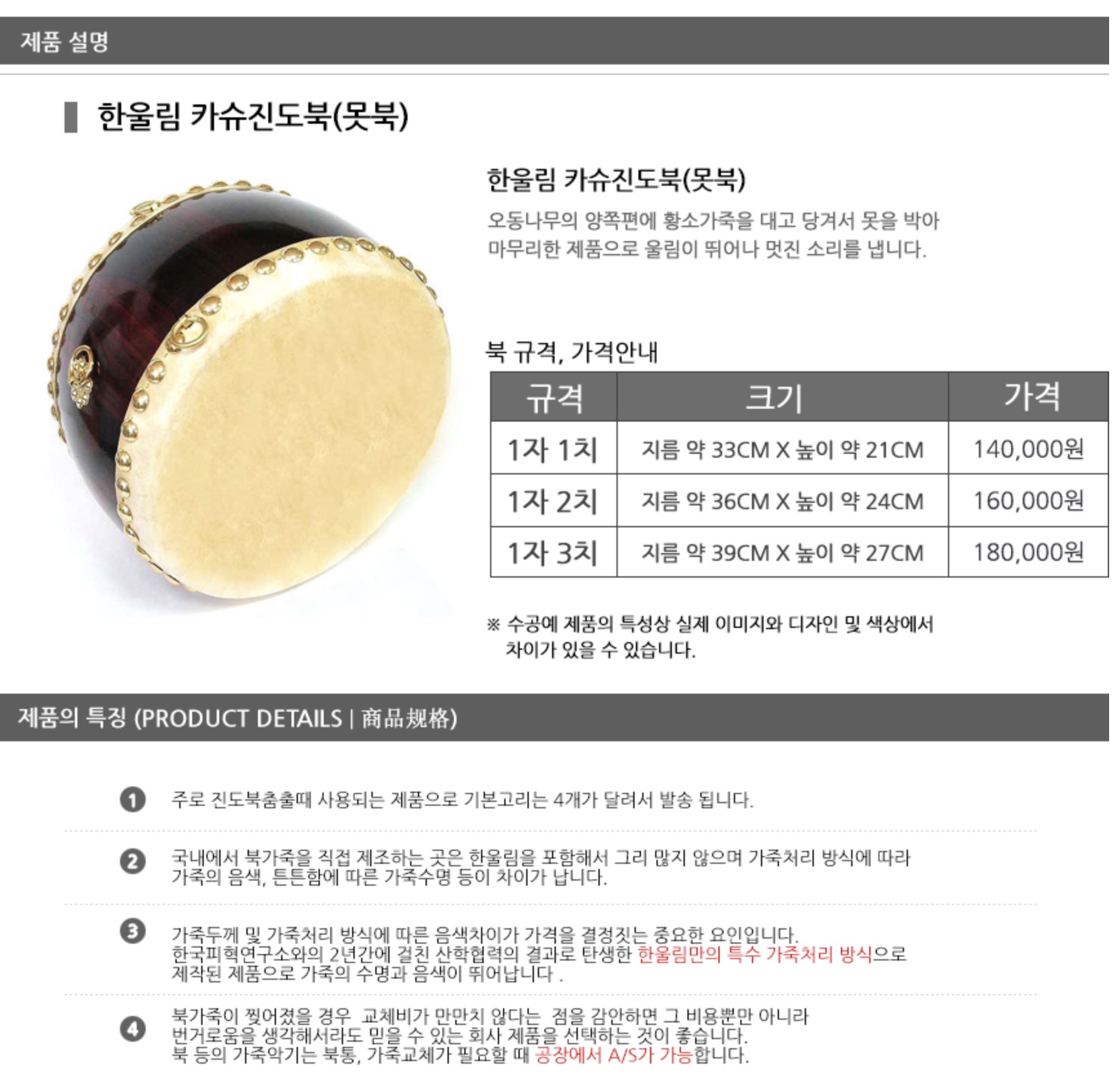 - 구성: 북+케이스+진도북채1벌