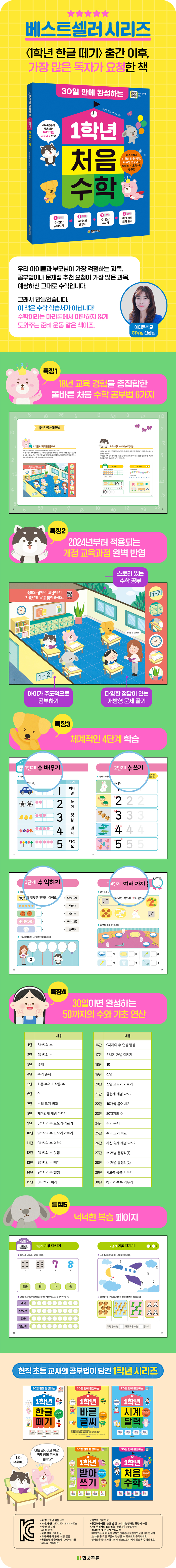 우리 아이들이 가장 자신 없어 하는 과목, 부모님이 가장 걱정하는 과목, 예상하신 그대로 수학입니다. 실제 학교와 온라인학교인 〈어디든학교〉에서 하유정 선생님은 수학 공부법과 수학 교재 추천 요청을 수없이 받아왔던 터라 아이들과 학부모님이 수학에 느끼는 불안감과 수학 공부 시작의 중요성에 대한 고민을 오랫동안 해왔습니다. 그래서 18년간 교육 경험을 한 권에 고스란히 담아 《30일 만에 완성하는 1학년 처음 수학》을 만들었습니다.
